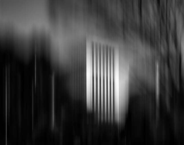 Although the selected motif is a simple cluster of highrise buildings in Tokyo, the resulting light collected through the slit vertically elongates all subjects and reduces even such ordinary scenery to an abstract structure.